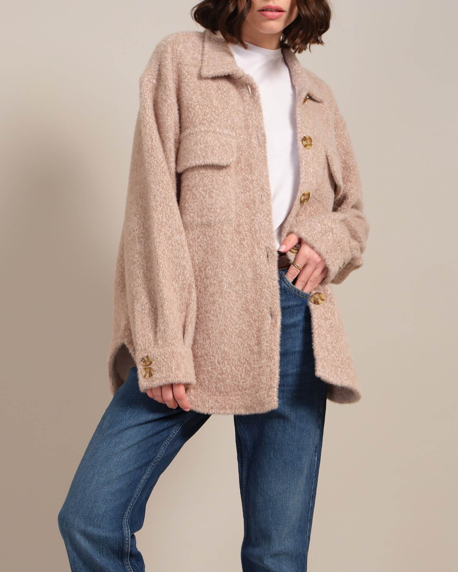 Layering in editorial images brings texture and storytelling to e-comm layouts—highlighting the garment’s versatility.